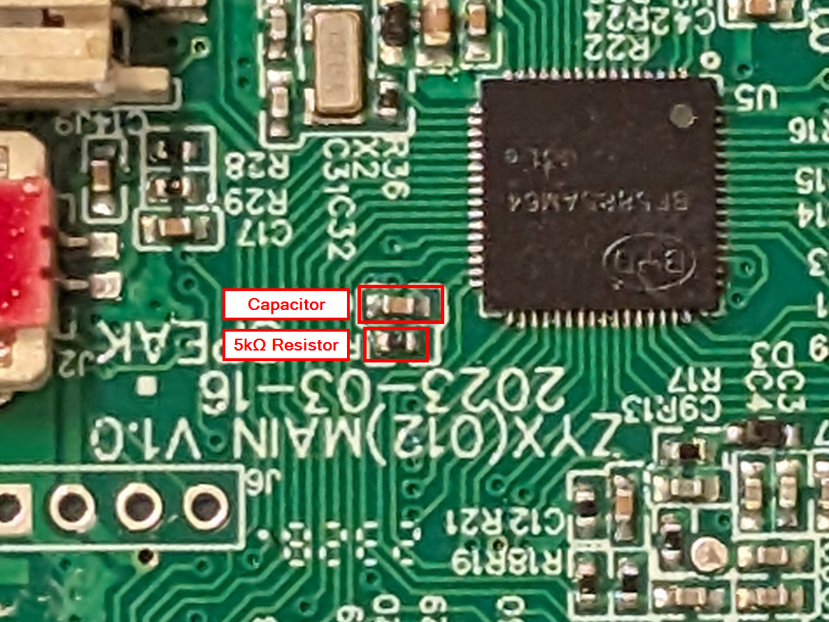 The 5kΩ pull-up resistor and capacitor on the MCU reset line