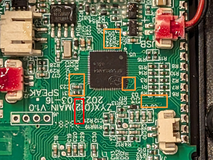 During the analysis, one resistor caught my attention: it measured around 5kΩ and had one end connected to VCC and the other to an MCU pin. This is a classic pull-up configuration, and combined with the context, it is actually indicative of a active-low reset line. More interestingly, right next to it sat a small capacitor with one end connected to the same MCU pin and the other to ground, a typical component on reset lines used to filter noise and ensure a reliable NRST signal.