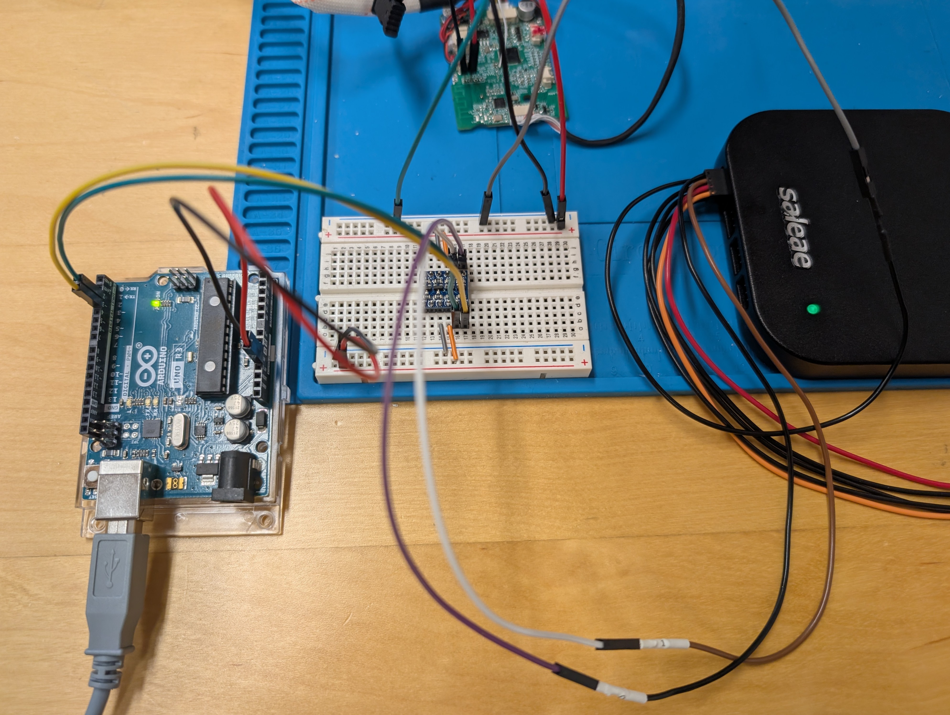 Attempting a connection through a programmer using those pins did not work. The likely missing piece was the reset pin, which is required to establish a proper SWD connection. On top of that, attaching a logic analyzer to those same pins during normal device operation revealed something that initially shifted my attention away from them: a clock signal on one pin and data on the other, consistent with I2C communication rather than SWD.