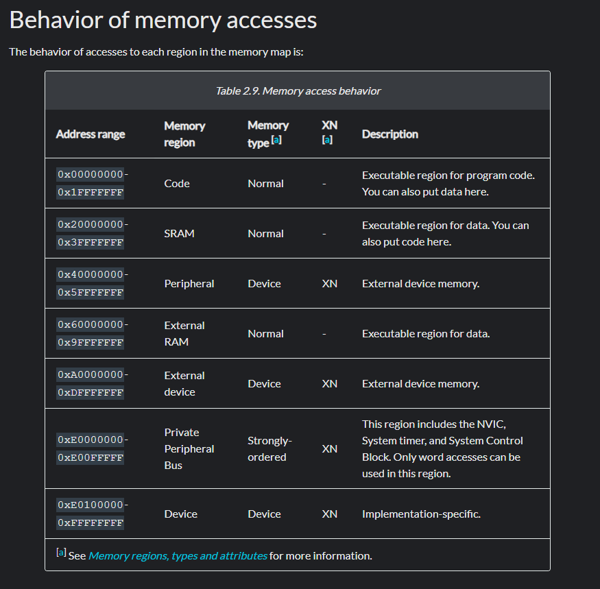 ARM Cortex-M0 fixed memory map used as reference (2)