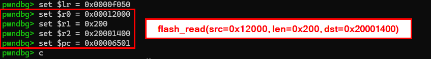 The key is the LR (Link Register): on ARM, when a function returns it branches to the address stored in LR. By setting $lr to the breakpoint address before every call, we ensure that when the invoked firmware function finishes and executes its return instruction, execution lands exactly on the breakpoint and the device halts again.