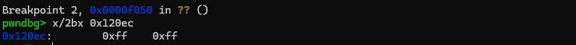 Hardware breakpoint at 0xf050 used as the fixed return point