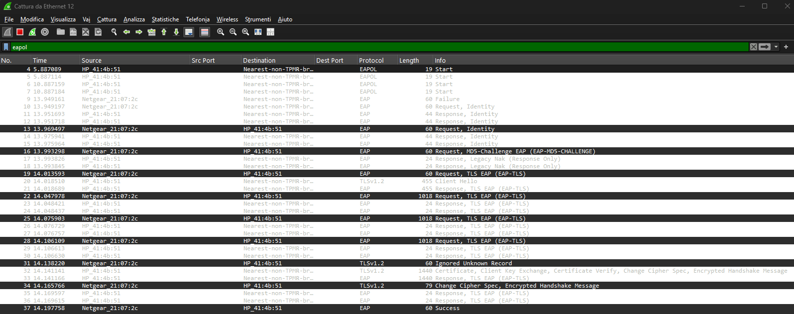 FreeRADIUS authentication logs and Wireshark EAPOL capture