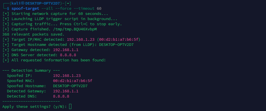 Note: this is the only active detection step; all others are passive. In testing, it consistently works only with Windows hosts that speak LLDP. Support for automatic hostname extraction on Linux distributions will be added in a future revision.
