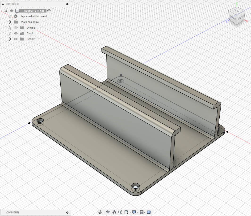 The case was modeled using the exact Pi 4 dimensions with clearances for each HAT. The goal was to keep the footprint as small as practical without restricting airflow or excessively cramping the cables. Final measures of the case are 140×100×100 mm (L×W×H)