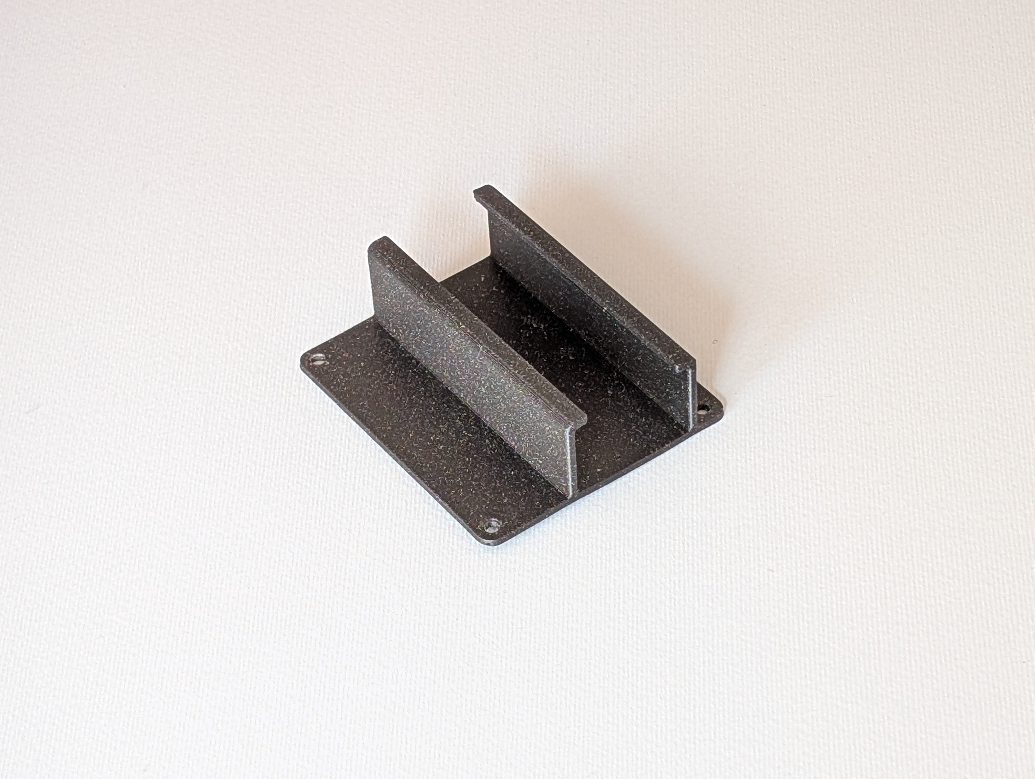 Before moving to the full enclosure, a better way to integrate the USB-to-Ethernet adapter into the tower was required. A slim, HAT-style tray was designed that the adapter slides into, with guide rails that hold it in place. The tray bolts onto the stack, so the adapter is mechanically secured. Once mounted, the module sits flush with the rest of the hardware, which makes internal cable routing cleaner and leaves enough clearance for the case.