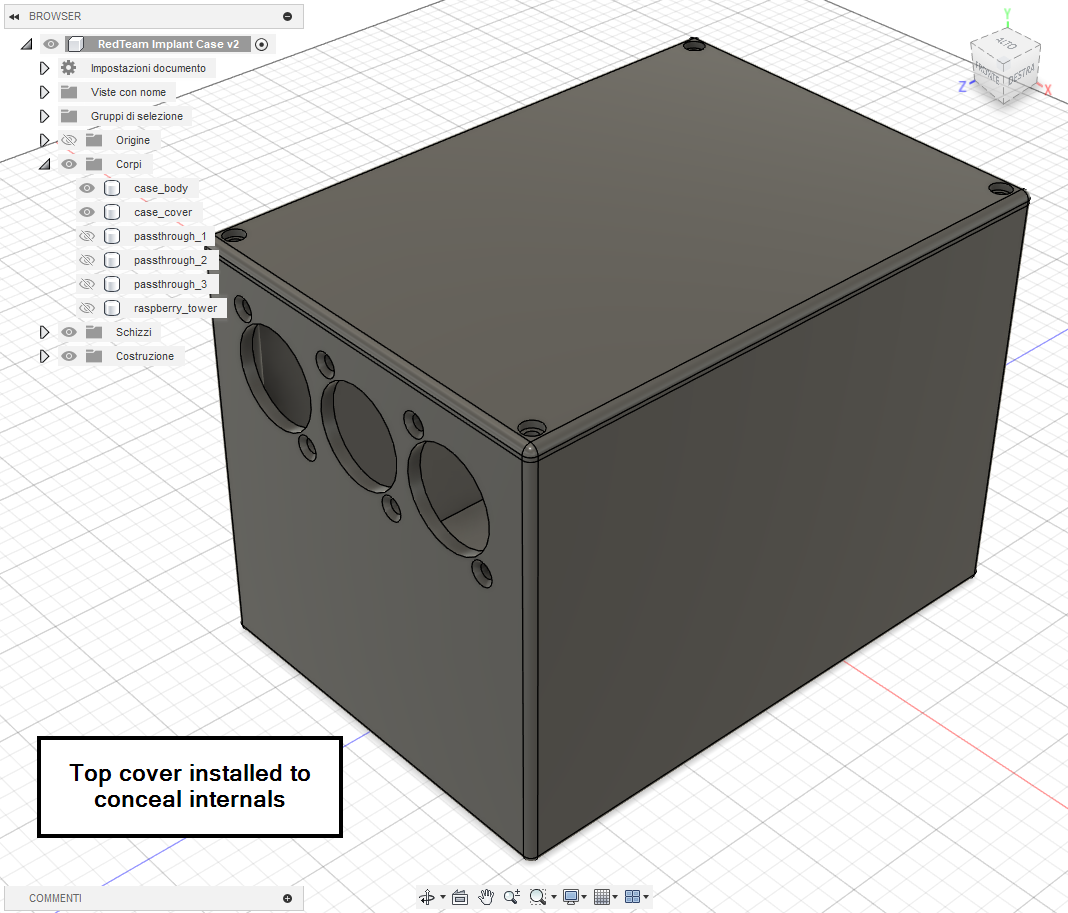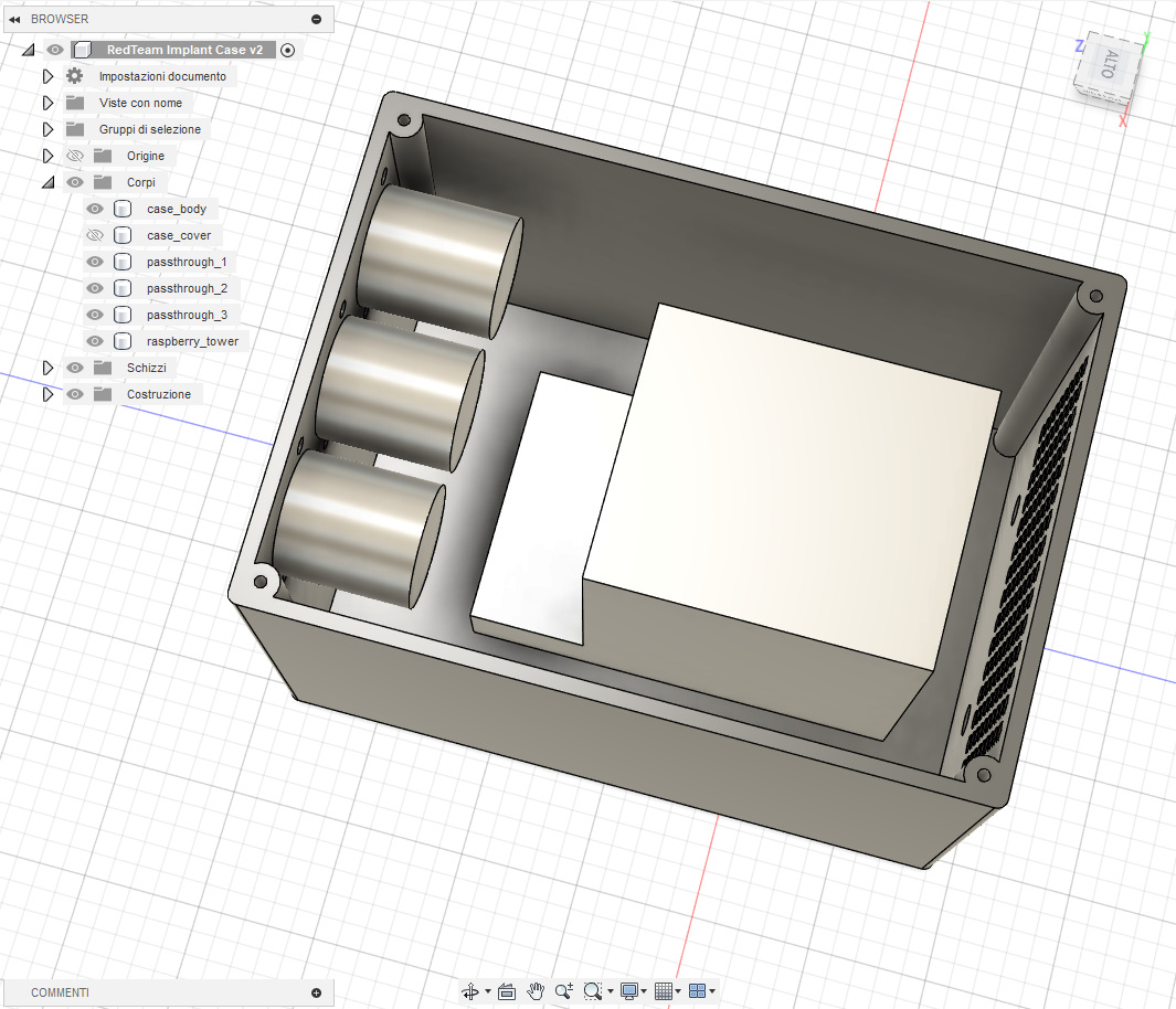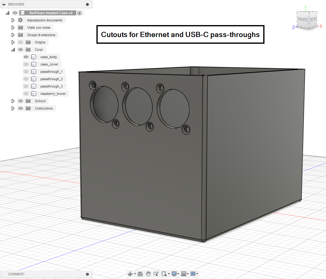 Fusion360 model showing Ethernet and USB-C pass-through cutouts